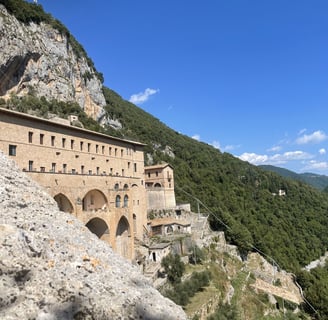 Italia har mye å by på også utenfor allfarvei. Vi oppdaget selv kjempe koselige Subiaco og det fantastiske klosteret til Sant Bendikt som fremdeles er bebodd og som er bygd inni et fjell på denne helt spesielle utflukten